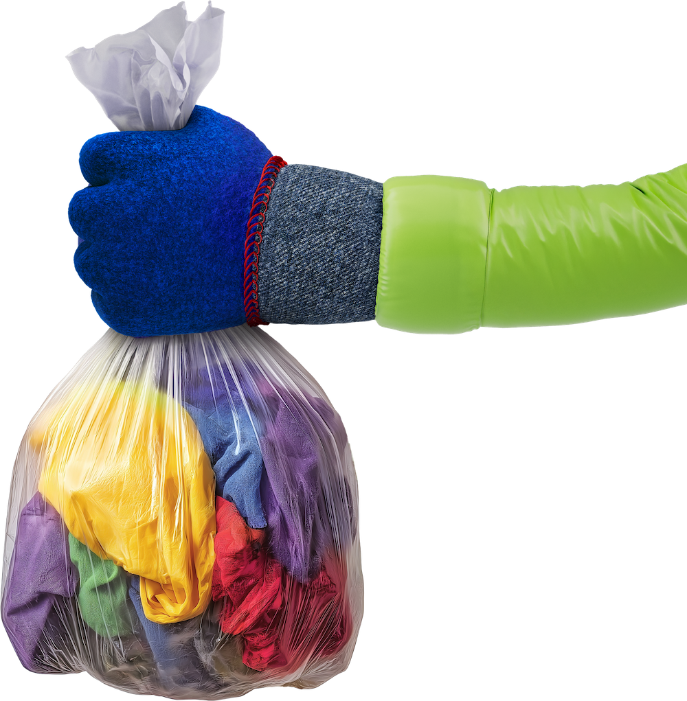 Goede vraag! Stop alles in een zak en knoop die goed dicht, dan kan er geen vocht of vuil bij. Lever de zak in bij een textielcontainer of een inleverpunt voor gebruikte kleding. Kringloopwinkels zijn ook blij met kleding en textiel die nog gedragen kunnen worden en schoon zijn.