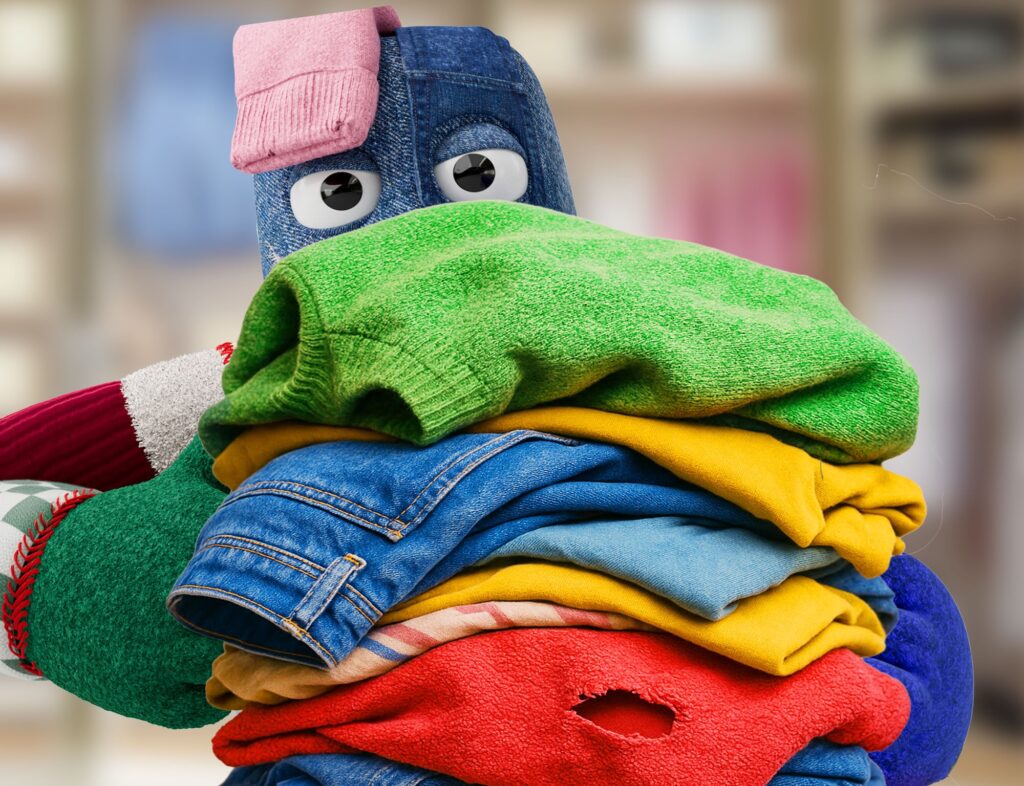 Verzamel al je (gebruikte) textiel, ook kapot en versleten, van onderbroek tot beddengoed of spijkerbroek.